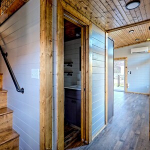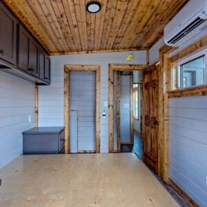 Inspired by Frank Lloyd Wright, this home is carefully designed to optimize functionality within a compact space. It features built-in furniture and storage solutions to maximize every inch. Open floor plans eliminate unnecessary walls, providing a sense of spaciousness and fluidity between living areas. The design incorporates large windows and natural materials, emphasizing harmony with the natural environment.