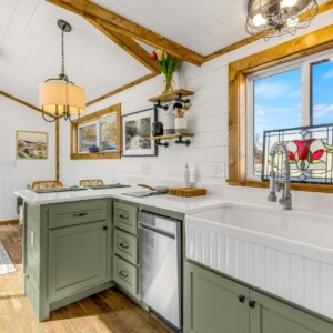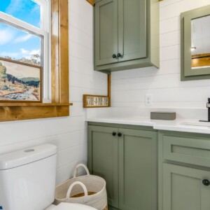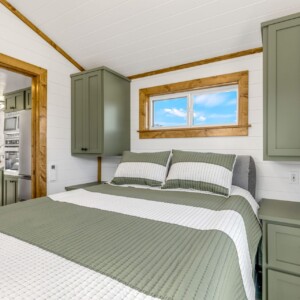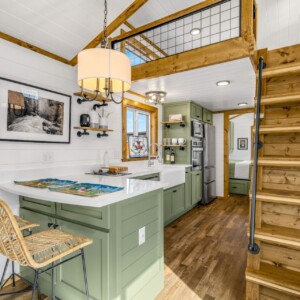 The Wilderness showcases a Scandinavian design with clean lines and a carefully chosen color palette, embracing a Scandi-Cabin aesthetic. Its trendy Iron-Ore exterior enhances any environment with significant curb appeal. Inside, the Alder cabinets paired with fantasy gray countertops create a harmonious blend of colors, offering comfort and exceptional quality. The walls and ceiling in Repose Grey (SW-7015) provide a serene atmosphere, while the Peppercorn accents (SW-7674) contrast this beautiful space.
