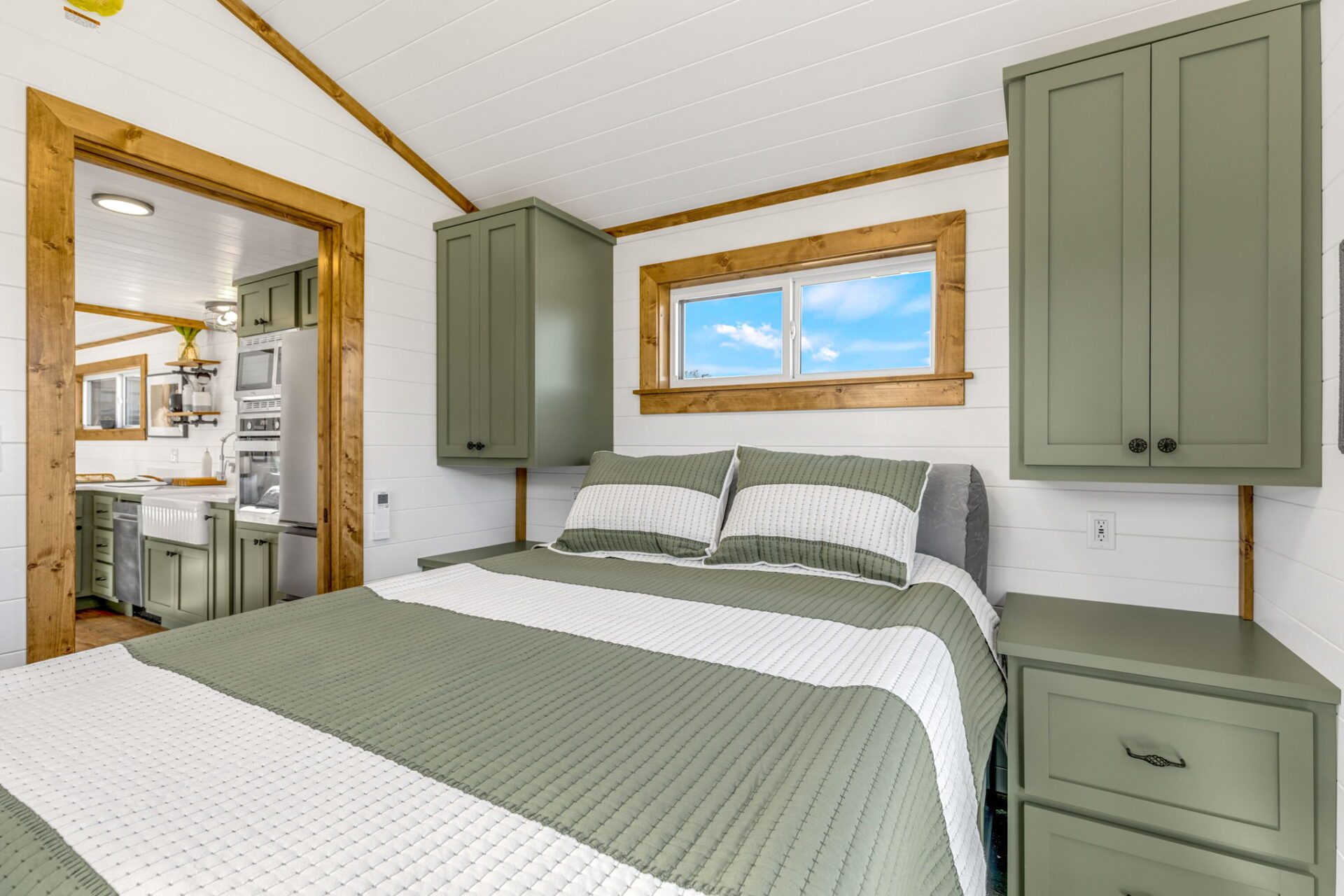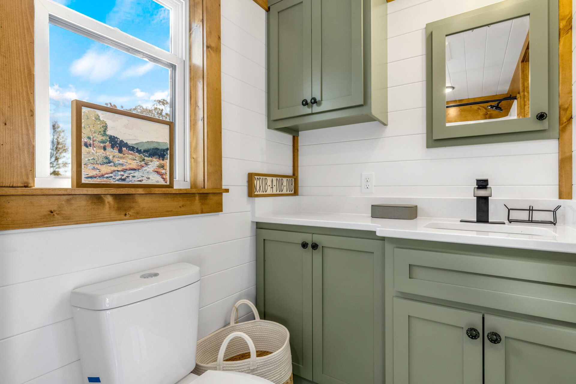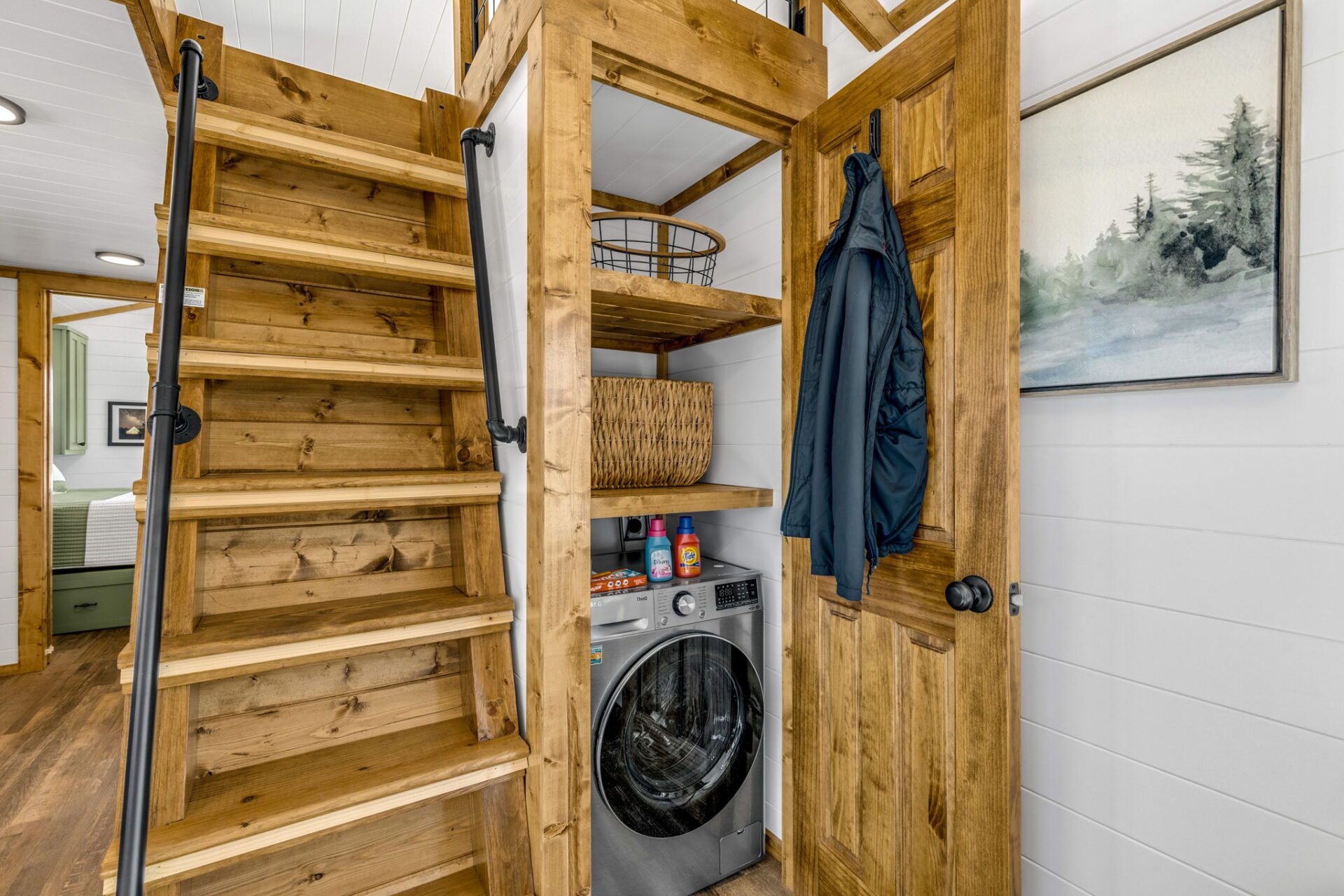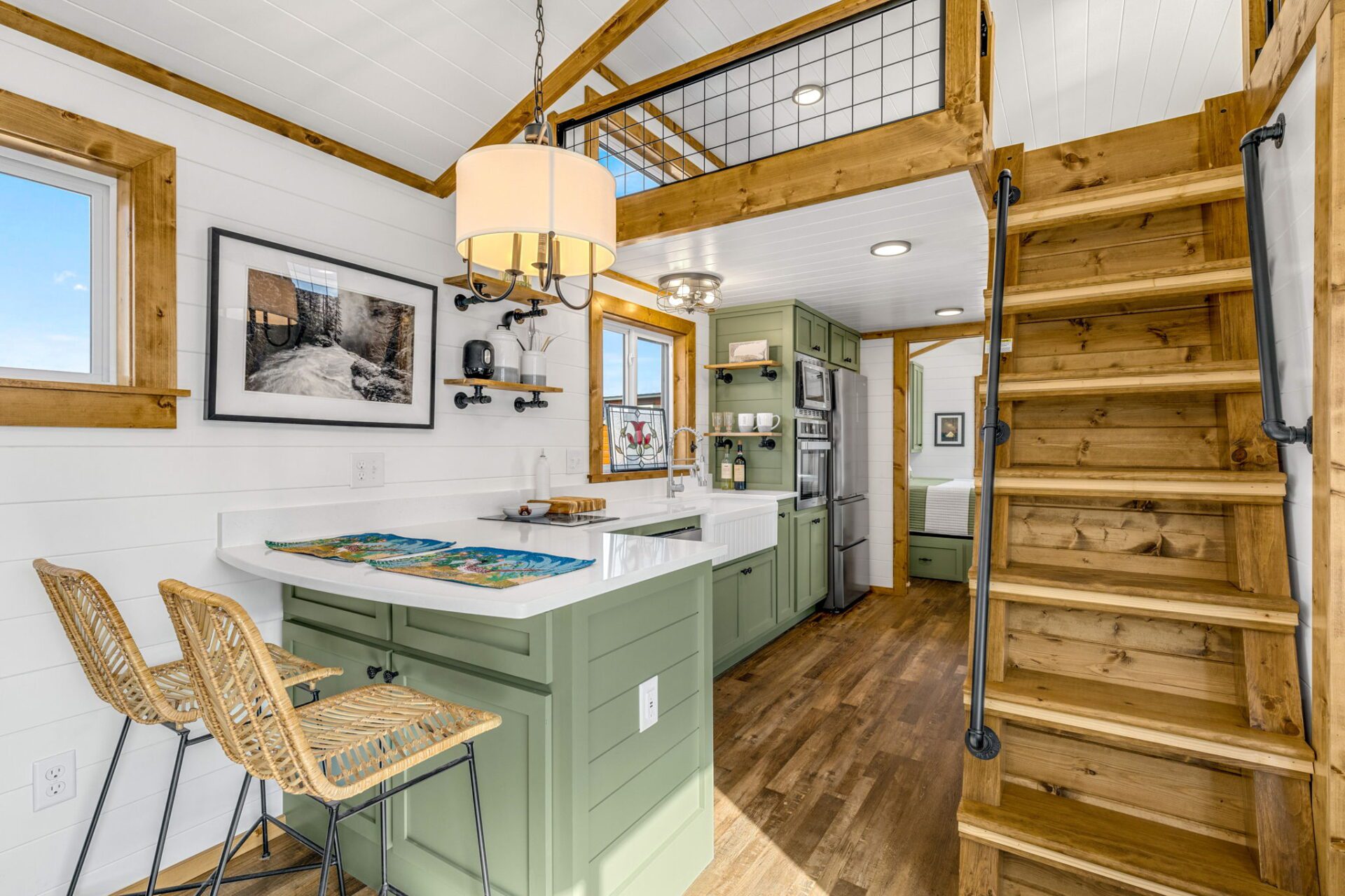The Wilderness showcases a Scandinavian design with clean lines and a carefully chosen color palette, embracing a Scandi-Cabin aesthetic. Its trendy Iron-Ore exterior enhances any environment with significant curb appeal. Inside, the Alder cabinets paired with fantasy gray countertops create a harmonious blend of colors, offering comfort and exceptional quality. The walls and ceiling in Repose Grey (SW-7015) provide a serene atmosphere, while the Peppercorn accents (SW-7674) contrast this beautiful space.