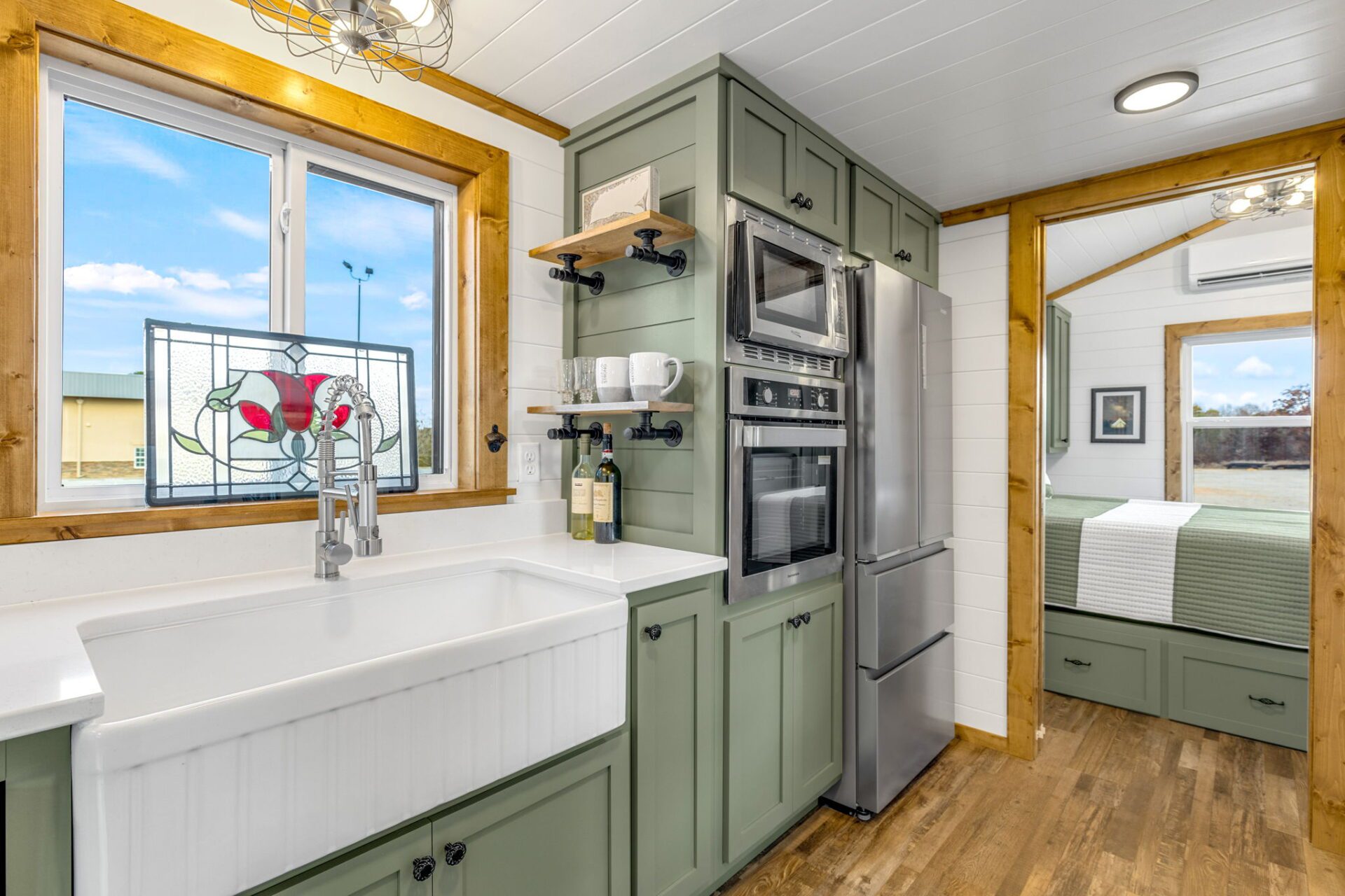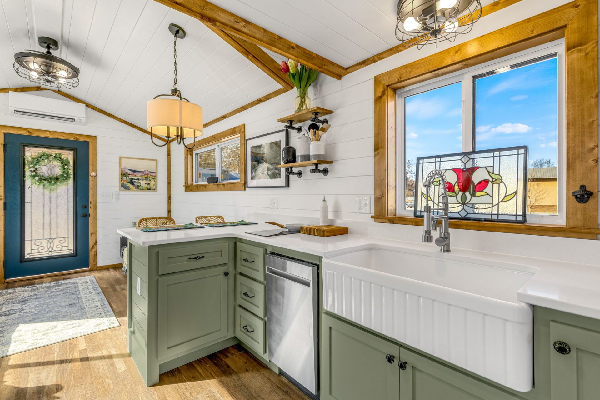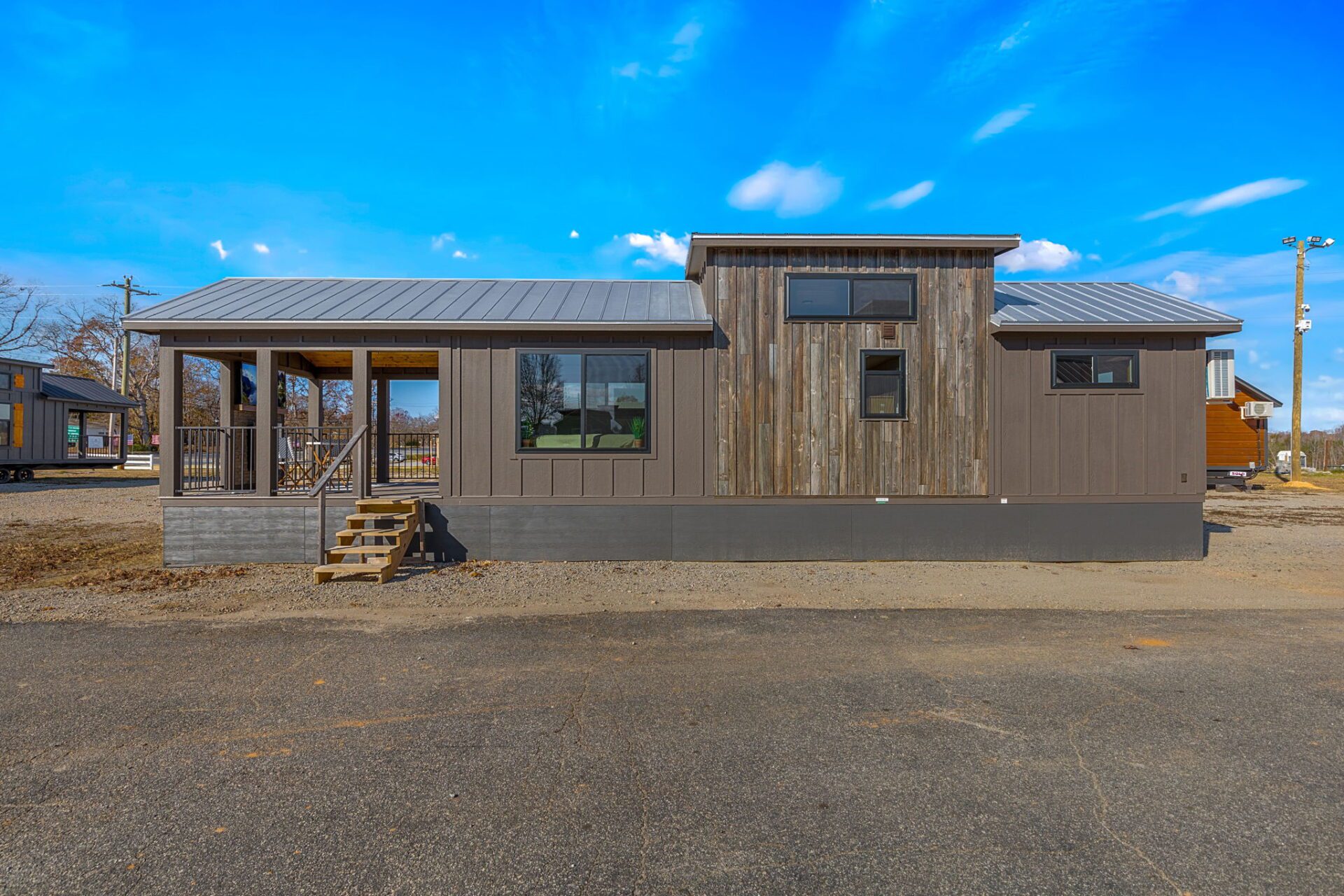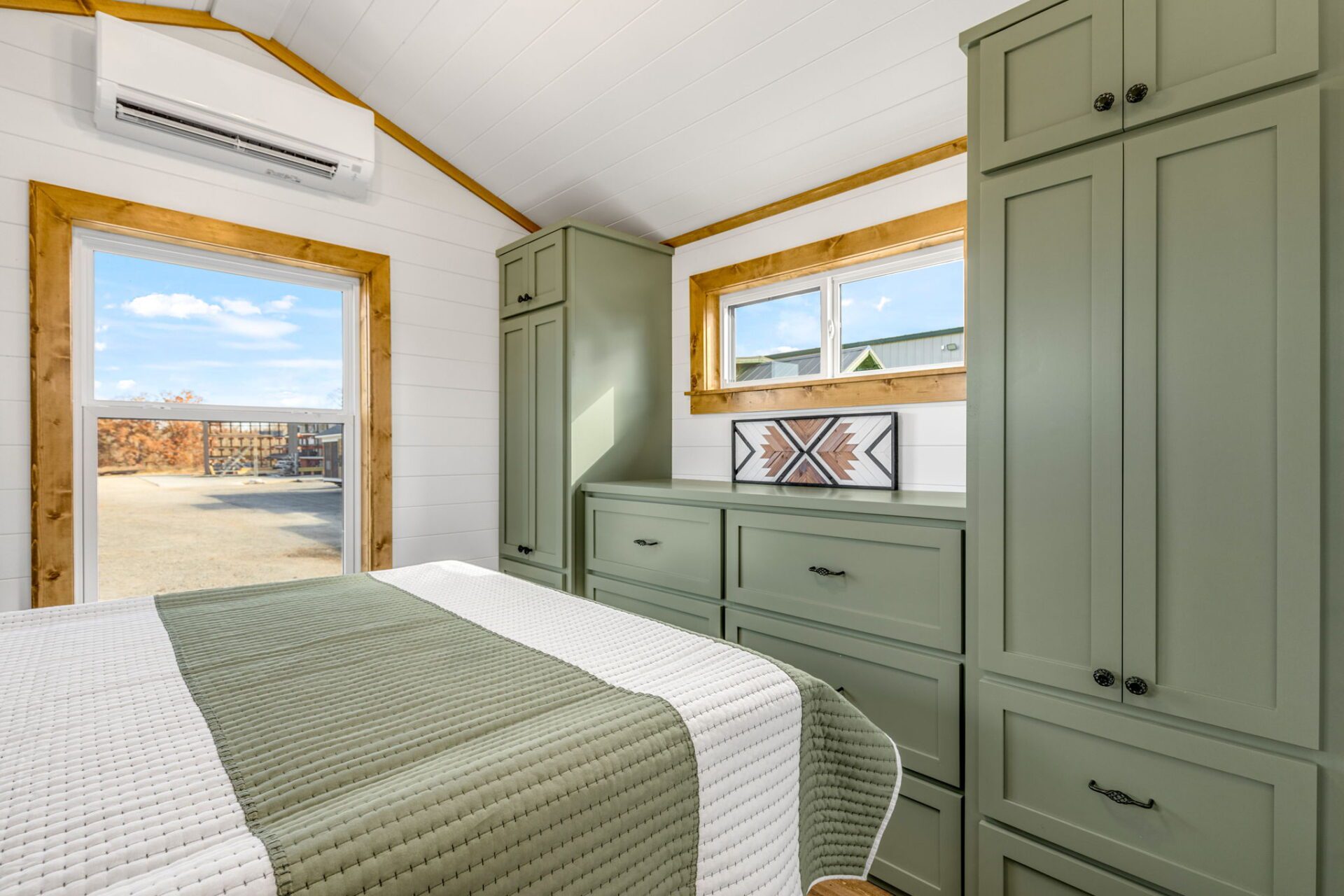 The Wilderness showcases a Scandinavian design with clean lines and a carefully chosen color palette, embracing a Scandi-Cabin aesthetic. Its trendy Iron-Ore exterior enhances any environment with significant curb appeal. Inside, the Alder cabinets paired with fantasy gray countertops create a harmonious blend of colors, offering comfort and exceptional quality. The walls and ceiling in Repose Grey (SW-7015) provide a serene atmosphere, while the Peppercorn accents (SW-7674) contrast this beautiful space.